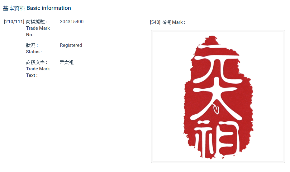 商標編號: 304315400